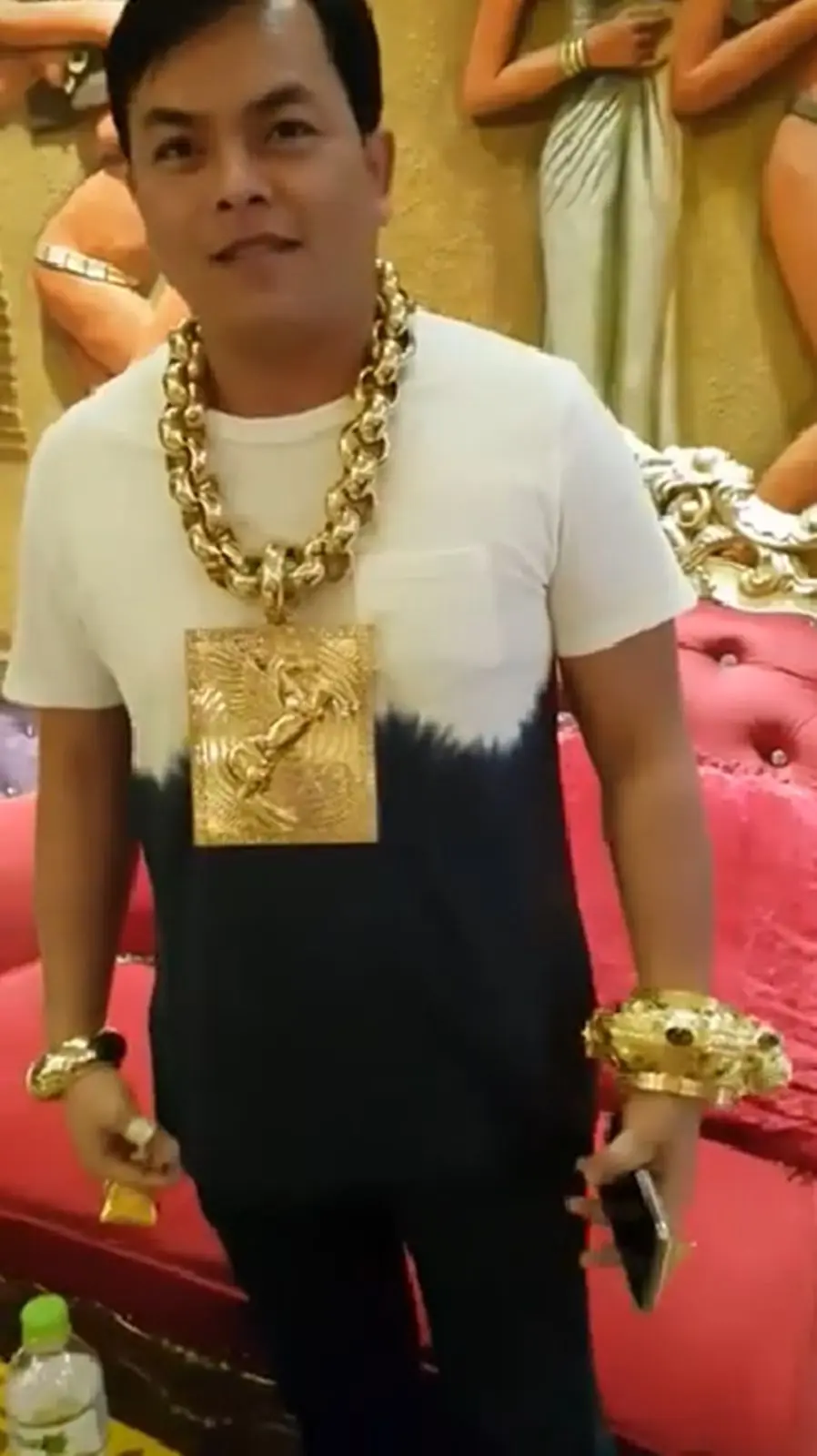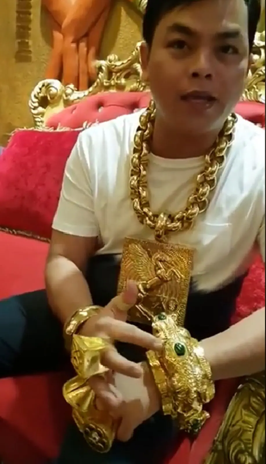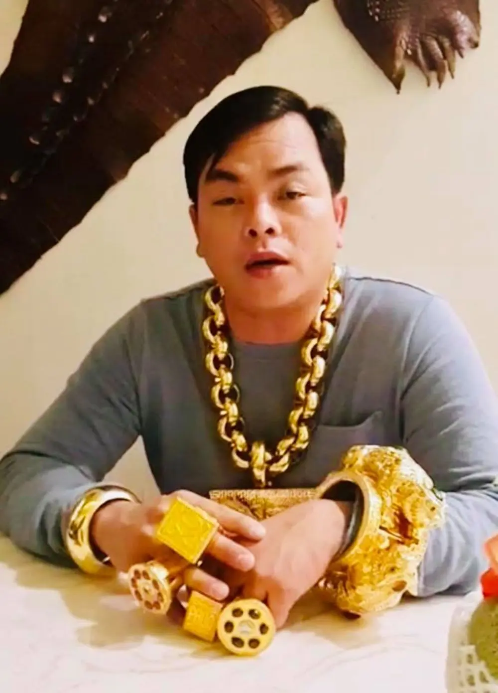 บอกเลยว่าไม่รวยจริงใส่ไม่ได้!!! เศรษฐีชาวเวียดนาม ใส่ทองคำหนักมากถึง 13 กิโล ทั้งสร้อยคอและแหวน
