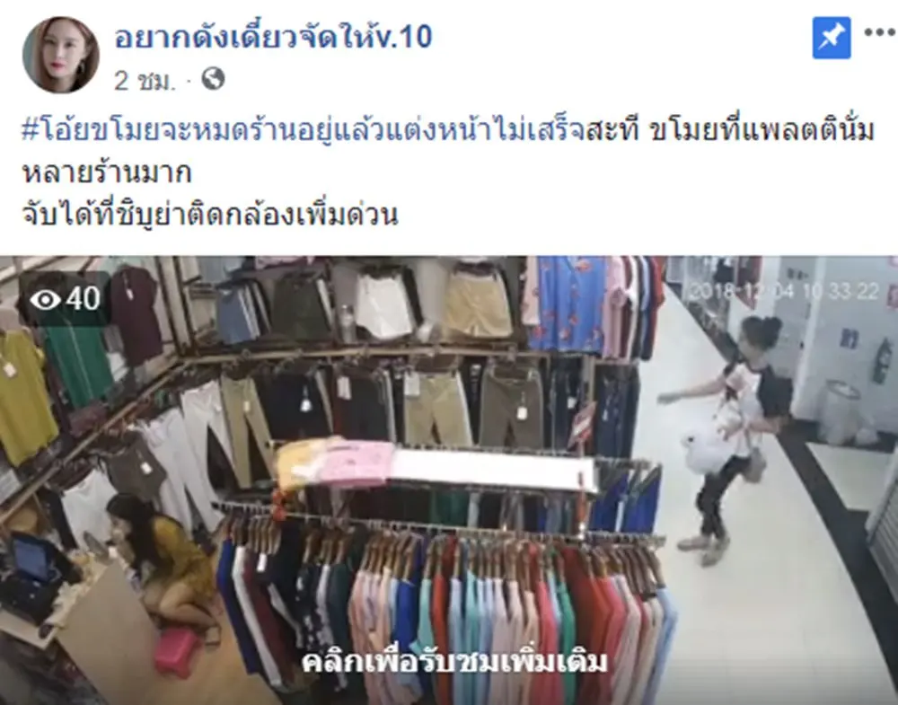 "โอ้ยขโมยจะหมดร้านอยู่แล้วแต่งหน้าไม่เสร็จสะที ขโมยที่แพลตตินั่มหลายร้านมาก จับได้ที่ชิบูย่าติดกล้องเพิ่มด่วน" ซึ่งจากคลิปดังกล่าว จะเห็นว่า มีหญิงสาวผู้หนึ่ง ลักษณะหุ่นสมส่วน มัดมวยผม ทำทีจับเสื้อผ้าเดินไปเดินมา เเล้วก็เเอบหยิบเอาเสื้อนั้นใส่ถุงที่หิ้วไว้ในมือ เเละไม่ใช่เเค่ชิ้นเดียว จากกล้องวงจรปิดที่บันทึกไว้หยิบไปด้วยกัน 3 ชิ้น เเละสิ่งที่ทำให้ชาวเน็ตไม่รู้จะสงสาร หรือรู้สึกขำคือ สาวคนดังกล่าวขโมยเสื้อผ้า ในระหว่างที่เจ้าของร้านกำลังเเต่งหน้า เเละเสื้อผ้าตัวสุดท้ายที่ขโมยคืออยู่ห่างจากเจ้าของร้าน เพียงเเค่เอื้อมมือ งานนี้ชาวเน็ตต่างเข้ามาเเสดงความคิดเห็นกันเป็นจำนวนมาก