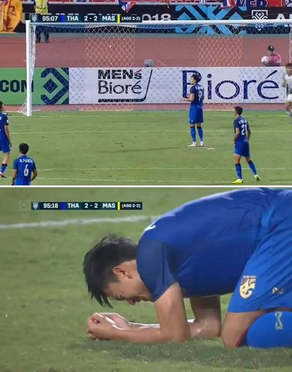 นาที 68 ไทยมาได้ลุ้นอีกครั้งจากจังหวะยิงไกลของ ฐิติพันธ์ พ่วงจันทร์ แต่บอลก็เหินข้ามคานนาที 72 มาเลเซียมาได้ประตูตีเสมอ จากจังหวะที่ โมฮามาดู ซูมาเรห์ เปิดบอลเข้ากลางให้ นอร์ชาห์รูล อิดฮาน ตาลาฮา กลับตัวยิงเข้าเสาสอง ให้สกอร์กลับมาเท่ากันที่ 2-2นาที 75 ไทยเปลี่ยนตัวคนสุดท้ายด้วยการส่งนูรูล ศรียานเก็ม ลงไปเล่นแทน ฟิลิป โรลเลอร์นาที 83 ไทยเกือบขึ้นนำอีกครั้งจากจังหวะฟรีคิกที่กรกช วิริยอุดมศิริ เปิดบอลให้ พรรษา เหมวิบูลย์ โหม่งไปชนคานออกหลังไปทดเวลาเจ็บไทยมาได้จุดโทษจากจังหวะที่ ซยาห์มี ซาฟารี ทำแฮนด์บอลในเขตโทษ แต่อดิศักดิ์ ไกรษร ยิงจุดโทษข้ามคานออกไปช่วงเวลาที่เหลือไม่มีประตูเพิ่มเติม จบเกมเสมอกันไป 2-2 ทำให้มาเลเซียผ่านเข้ารอบด้วยกฏประตูทีมเยือน โดยจะเข้าไปพบกับ ผู้ชนะระหว่าง เวียดนาม หรือ ฟิลิปปินส์