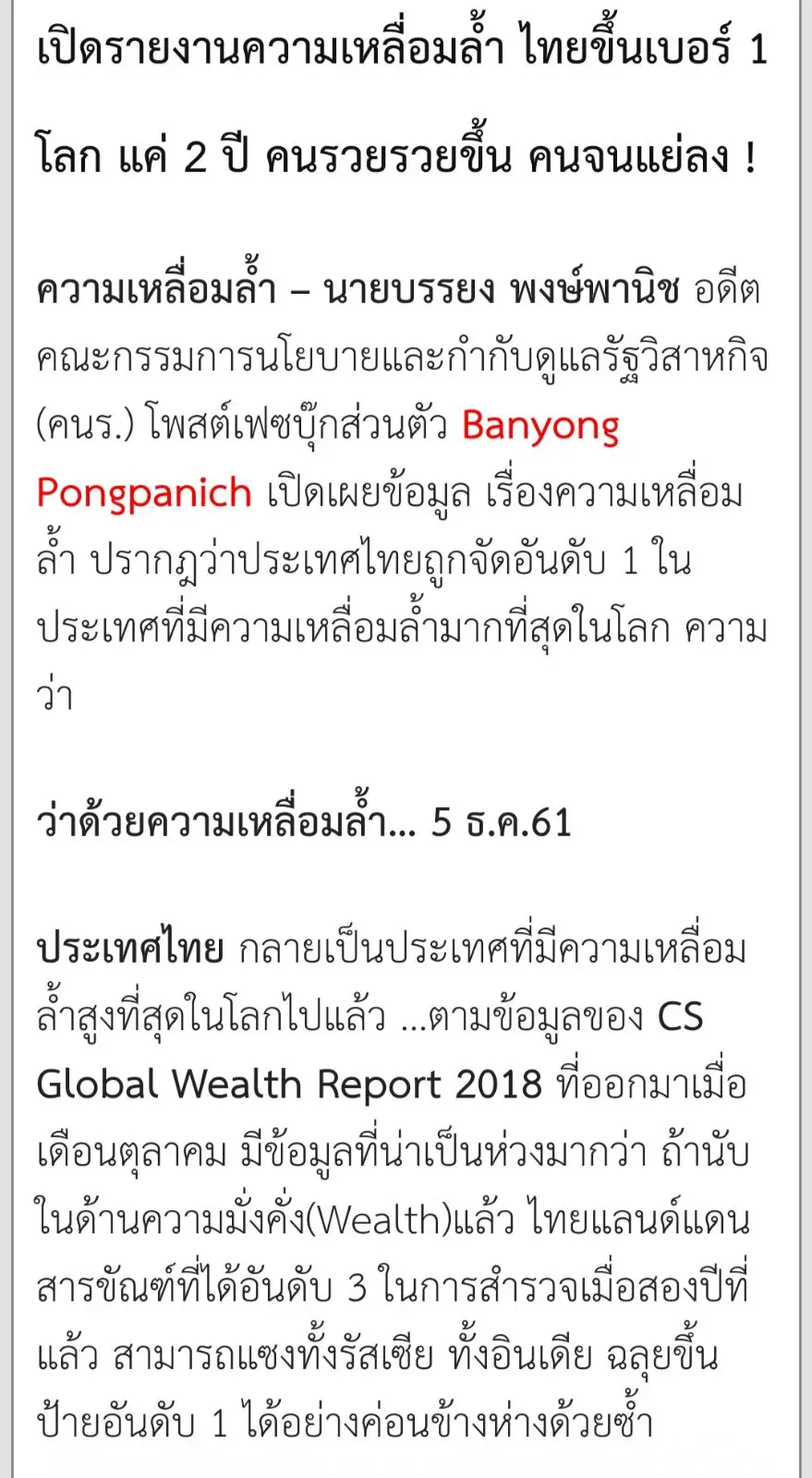 วันละกลอน"ไชโย;ไทยได้ที่หนึ่งความเหลื่อมล้ำรวย-จน!?