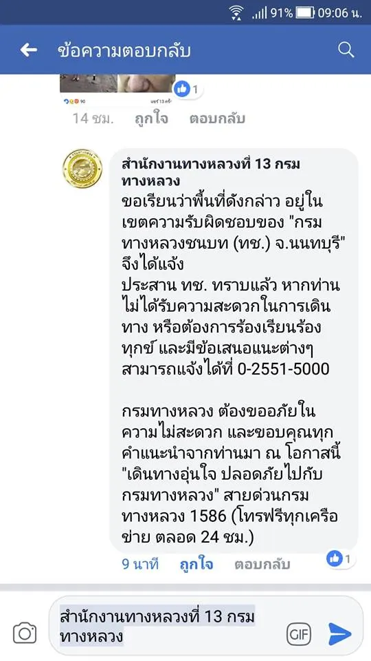 “ที่ฟุตบาธบ้านอ้อย (ม.ล. อัจฉราพร สุขสวัสดิ์) มีถนนเลี่ยงเมืองนนทบุรี ไม่เชื่อก็ต้องเชื่อ อีกครึ่งเซ็น (ซม.) ทิ่มตา ระหว่างเดินกลับจากเซ็นทรัลรัตนาธิเบศร์กลับบ้าน ย้ำตั้งใจเดินไม่ได้ก้มเล่นโทรศัพท์ใด ๆ น่ากลัวมาก ๆ