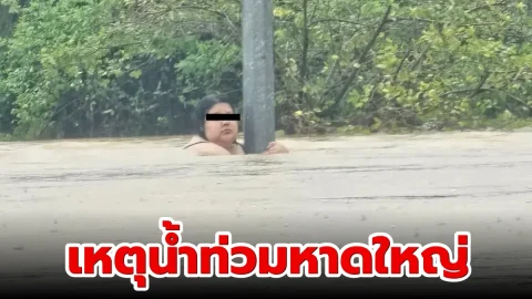 กันจอมพลังเผยภาพ สุดตกใจ หญิงเกาะเสาไฟฟ้ากลางน้ำเชี่ยวหาดใหญ่ ลั่นอะไร ไม่เคยเจอก็ได้เจอ