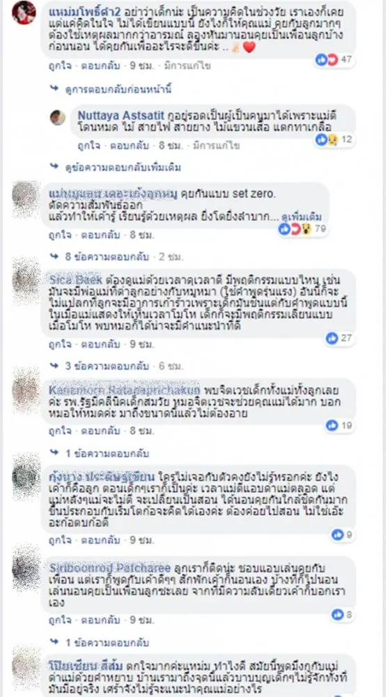 ด้านชาวเน็ตที่ได้อ่านเรื่องราวดังกล่าว ต่างก็เข้ามาวิพากษ์วิจารณ์กันไปต่างๆ นานา และเสนอแนะแนวทางแก้ไข ทั้งแนะนำให้คุณแม่ค่อย ๆ เข้าหาลูก ชวนคุย เข้าไปนอนคุยด้วยกันเพื่อแสดงความใกล้ชิดระหว่างแม่ลูกให้มากขึ้นไปกว่าเดิม