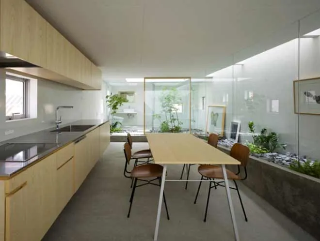 และบ้านบนพื้นที่จำหัดของเราหลังสุดท้ายนั้นแม้ว่าจะอยุ่บนพื้นที่ที่น้อยและแคบมากๆ แต่ผู้ออกแบบก็ยังสามารถยัดสวนเล็กๆ เข้าอยู่ภายในบ้านได้อย่างน่าทึ่ง ตัวบ้านถูกแบ่งออกเป็ฯ 2 ส่วนมีทางเดินเชื่อมเข้าหากันทำให้ดูโล่งและกว้างขึ้นนั่นเองครับ