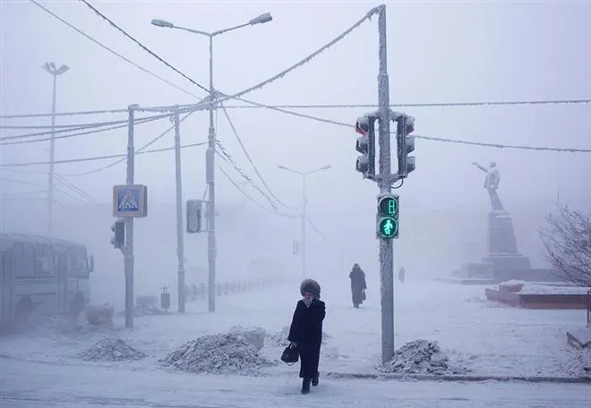 อย่างเช่นเมืองแห่งหนึ่งในแถบไซบีเรียของรัสเซียที่ว่ากันว่าเป็นเมืองที่หนาวที่สุดในโลก มีอุณหภูมิเฉลี่ยติดลบกว่า 60 องศาเซลเซียส ในหน้าหนาว ส่วนในเดือนมกราคมนั้นอุณหภูมิเฉลี่ยอยู่ที่ 50 องศาเซลเซียส ชาวบ้านต้องทนกับสภาพอากาศที่เย็นสุดขั้วและปกคลุมไปด้วยหิมะขาวโพลน