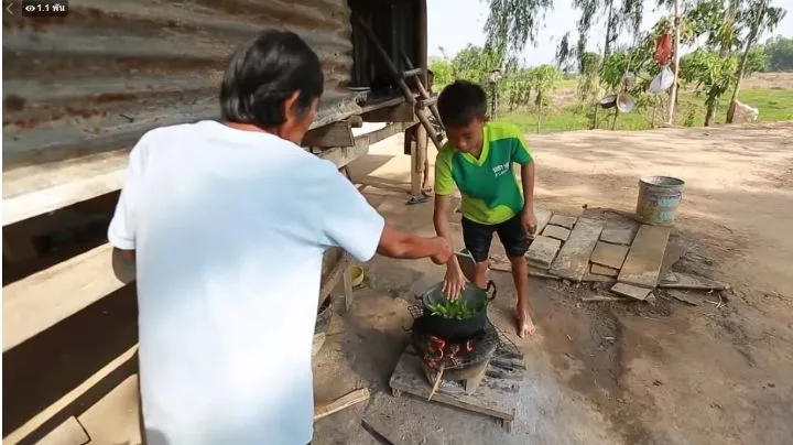 ซึ่งบ้านของเด็กเป็นที่พักพิงของเด็กๆ และคนแก่ ที่อยู่ด้วยกัน 5 คน มีหลาน 3 คนยาย และพี่ชายของยาย อายุ 77 ปี อาหารการกินนั่นก็เก็บผัก มาทำเป็นอาหาร ช่วยเหลือกันละกัน