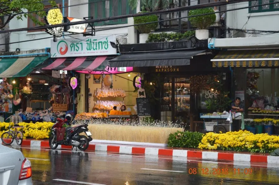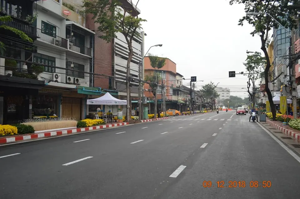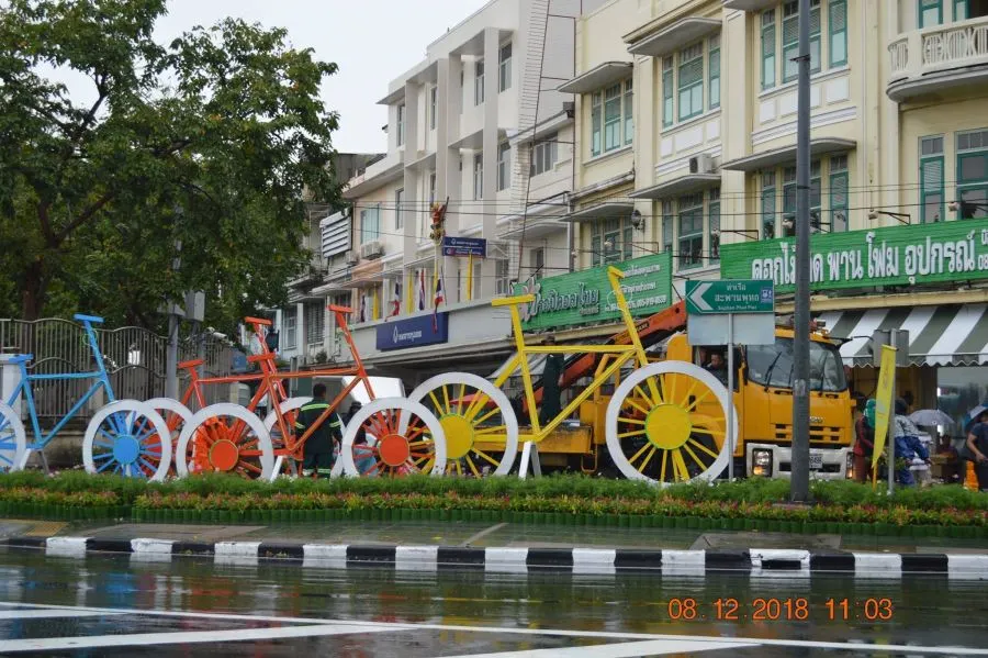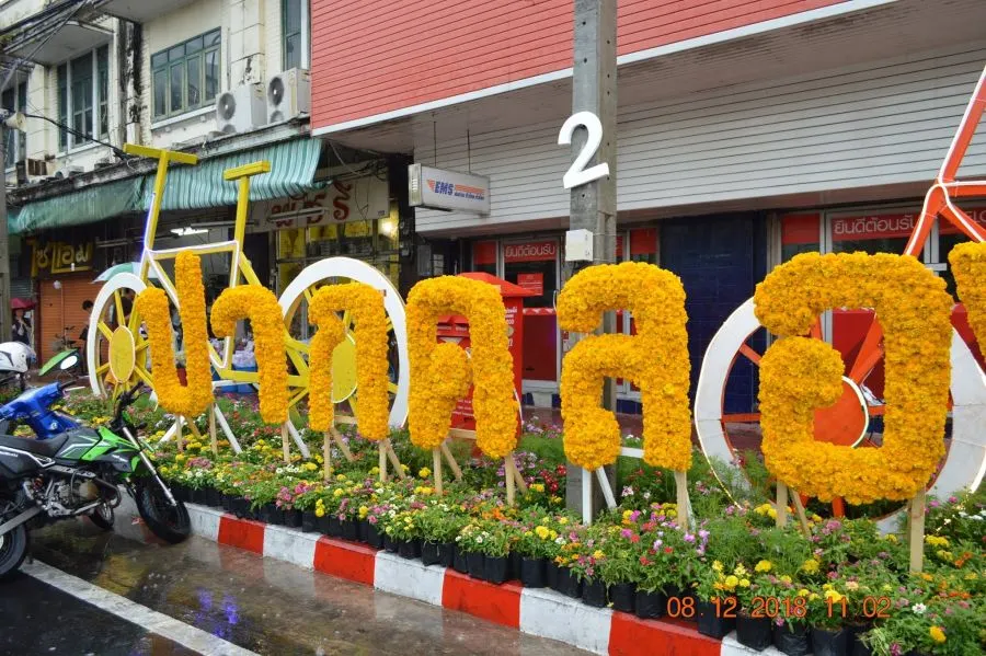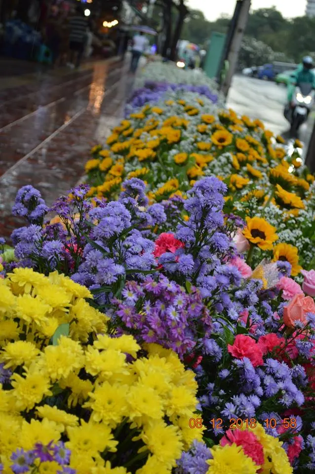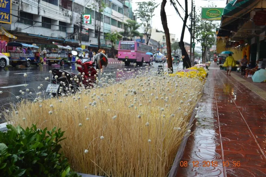 ภาพความสวยงามของดอกไม้สดทั้งสองฝากฝั่งถูกประดับตกแต่งจากฝีมือของชาวชุมชนปากคลองตลาด เพื่อรอต้อนรับกิจกรรมปั่นจักรยาน "Bike อุ่นไอรัก" ที่จะมีขึ้นในวันนี้ (9/12/61)