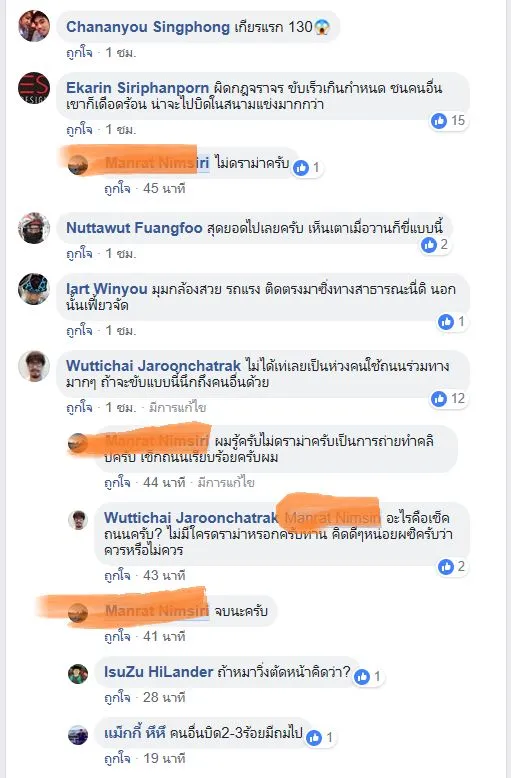 ทั้งนี้ในเวลาต่อมามีคนเข้ามาแสดงความคิดเห็นว่า ความเร็วเกินกำหนด ชนคนอื่นเขาจะเดือดร้อน น่าจะไปบิดในสนามแข่งมากกว่า เป็นห่วงคนใช้ถนนร่วมทางมากๆ ถ้าจะขี่แบบนี้คิดถึงคนอื่นด้วย