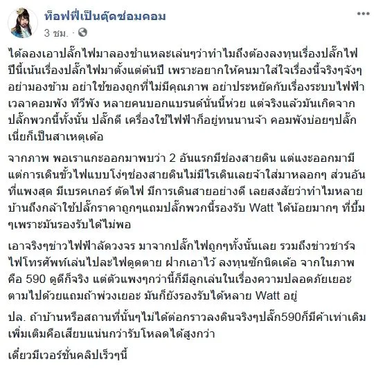 โซเซียลชำแหละ “ปลั๊กราง” สามราคา กับเหตุผลที่ต้องลงทุนซื้อของแพง!!