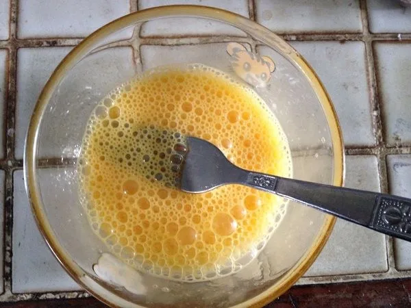 1. ตีไข่ไก่พอแตก ปรุงรสตามชอบ