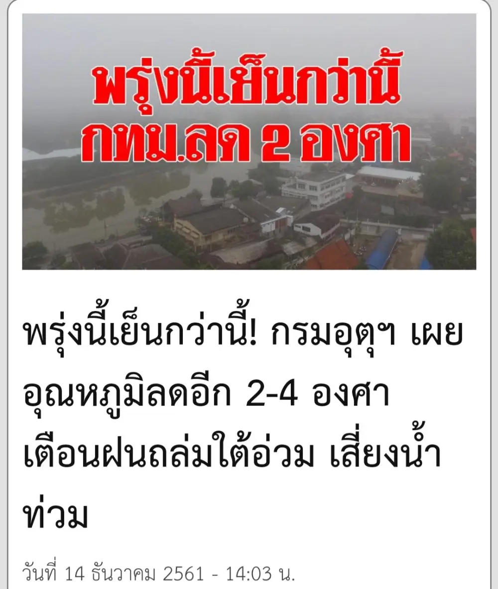 อุตุแจ้ง แถลงเตือน อากาศลด