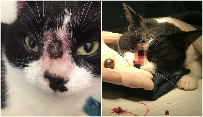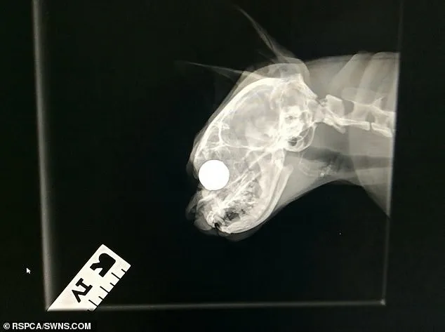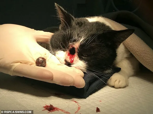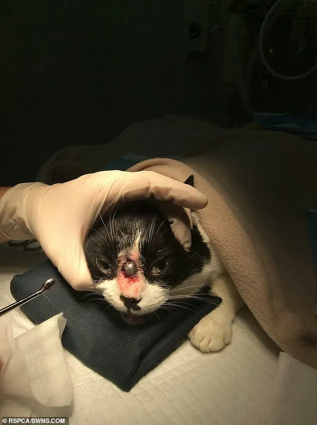 หลังจากนั้นเมื่อมีคนพบเห็นเจ้าแมวน้อย พร้อมกับพามันไปให้สัตวแพทย์ RSPCA ใน Canterbury, Kent และมันต้องได้รับการผ่าตัดฉุกเฉินเพื่อเอาลูกโลหะออกจากใบหน้าที่แตกเสียหายเพราะแรงกระแทก