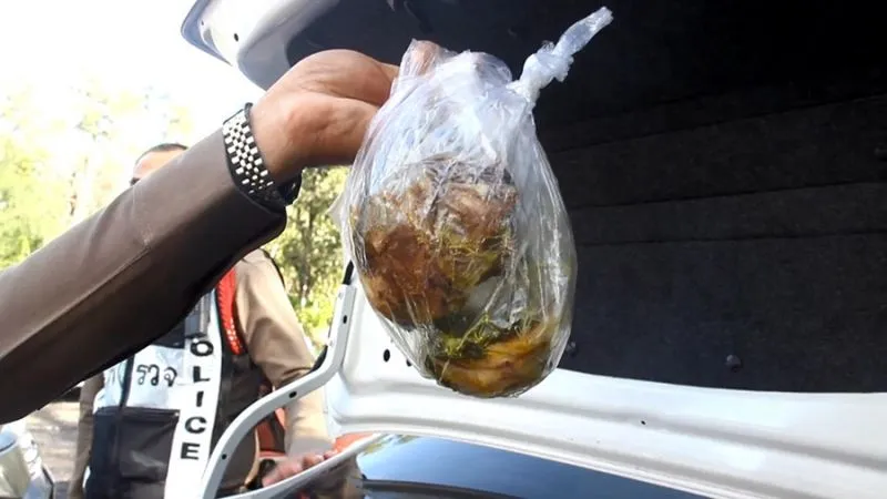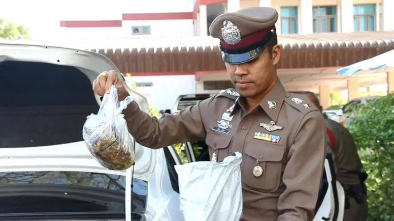 พร้อมของกลาง6,000เม็ด และอีก178กรัม บรรจุอยู่ในกระเป๋าสะพาน มีข้าวของสัมภาระ รวมทั้งถุงพลาสติกบรรจุปลาสด สภาพเน่าเหม็นกลิ่นคละคลุ้ง ซุกซ่อนอยู่ท้ายกระโปรงรถเก๋งโตโยต้า วีออส สีขาว สวมทะเบียนปลอมตบตาเจ้าหน้าที่ ก่อนควบคุมตัวมาสอบสวนที่สถานี