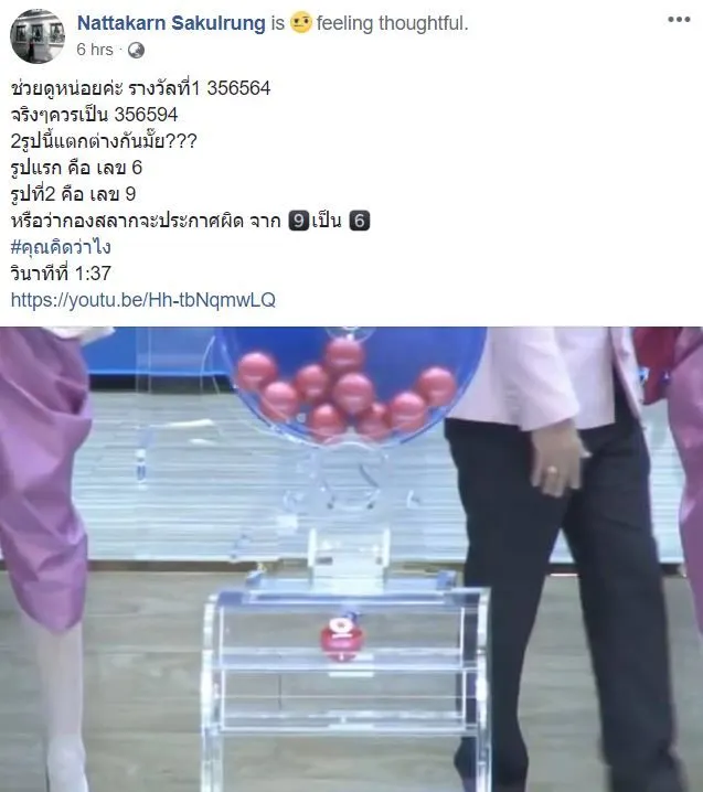 ซึ่งเรื่องราวผลสลากกินเเบ่งรัฐบาลดังกล่าว เผยเเพร่ลงในโลกออนไลน์โดยผู้ใช้เฟซบุ๊ค ..Nattakarn Sakulrung… ถึงการที่ประกาศรางวัล 1 ดูตัวเลขไม่ชัดเจน ระหว่าง เลข9 กับ เลข 6 จนเกิดประเด็นวิพากษ์วิจารณ์กันไปต่างๆนานา