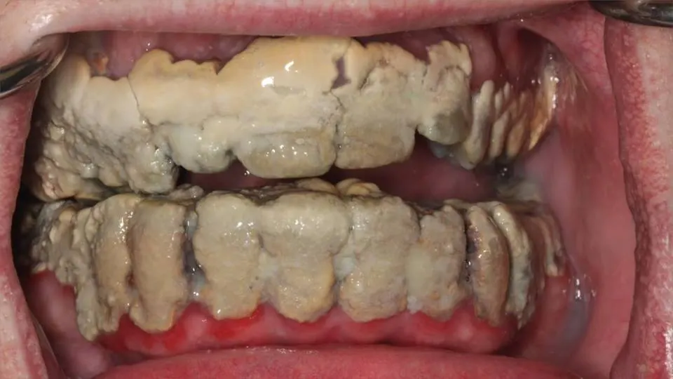 จากนั้นคณหมอก็ถามว่า ผู้ป่วยแปรงฟันครั้งล่าสุดเมื่อไร เขาบอกกับคุณหมอว่า แปรงฟันครั้งสุดท้ายเมื่อ 20 ปีที่แล้ว จากนั้นคุณหมอได้เชิญผู้ป่วยขึ้นเตียงพร้อมกับอธิบายว่าผู้ป่วยต้องขูดหินปูนนะ