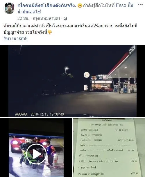 กำลังเป็นประเด็นร้อนในโลกออนไลน์ขณะนี้ สำหรับคลิปที่ผู้ใช้เฟซบุีกชื่อว่า เบื่อคนมีตังค์ เสียงดังกันจริง. ออกมาแชร์ไว้ หลังจากถูกหนุ่มขับรถหรูราคาแพงหลักแสน แต่กลับชักดาบค่าน้ำมันเพียง 275 บาทซะงั้น โดยเรื่องราวดังกล่าวหลังจากถูกเผยแพร่ออกไปก็มีหลายคนวิพากษ์วิจารณ์อย่างมาก “ซึ่งในคลิปดังกล่าวเป็นเหตุการณ์ๆหนึ่ง ที่มีหนุ่มคนหนึ่งได้ขี่จยย.บิ๊กไบค์เข้ามาเติมน้ำมันภายในปั้มแห่งหนึ่ง จากนั้นได้ขี่ไปจอดหน้าตู้จ่ายนำมัน ก่อนที่พนักงานปั้มจะเดินไปเติมให้ แต่เติมยังไม่เสร็จ บิ๊กไบค์คันดังกล่าวอยู่ดีๆทำทีเหมือนควักเงินแล้วก็ขี่ออกไปอย่างรวดเร็ว ทั้งที่ในบิลเงินค่าน้ำมันแค่ 275 บาท” โดยในคลิปจะเห็นว่าชายคนดังกล่าวขับรถมาเติมน้ำมัน และเมื่อเติมเสร็จก็ทำทีเป็นควักเงิน ก่อนที่จะบิดคันเร่งออกไป ท่ามกลางความมึนงงของพนักงาน