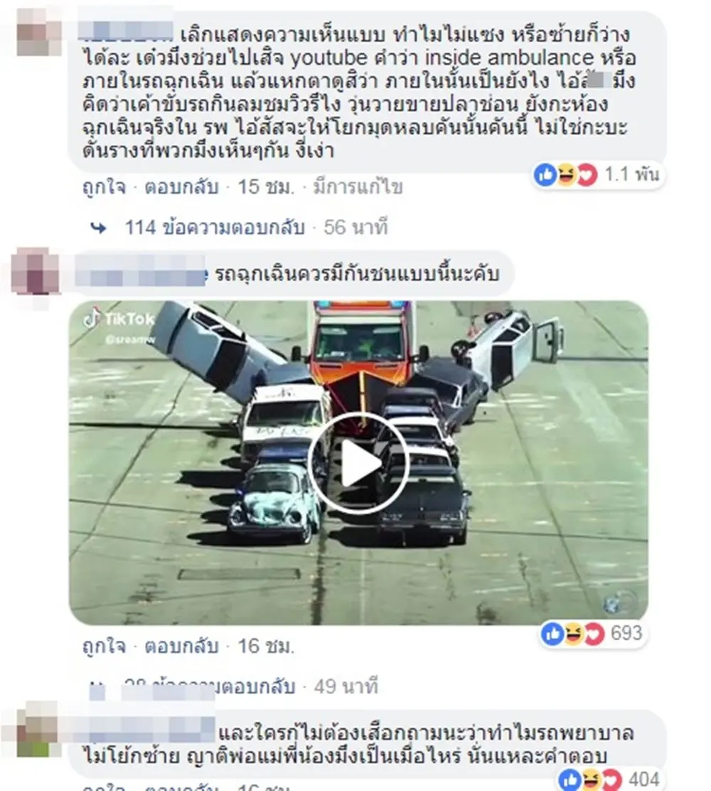 ทำเอาคนในโซเชียลแห่วิจารร์ยับอีกแล้ว สำหรับเหตการณ์ขับรถขวางทางรถพยาบาล โดยล่าสุดนั้นทางเพจ เฮียขับรถ ออกมาแชร์คลิปรถเก๋งคันหนึ่งที่ขับเลนเร็วแต่ขับช้ามากๆ พร้อมทั้งไม่ยอมหลบให้รถพยาบาลอีก ทั้งที่เสียงหวอของรถก็ดังมาก แถมเจ้าหน้าที่ก็ประกาศขอทางด้วย แต่ก็ไม่เป็นผล โดยทางเพจระบุข้อความแนบคลิปดังกล่าวไว้ว่า “มึงต้องหูหนวกตาบอดเท่านั้นอ่ะ ทั้งแสงทั้งเสียง กูจะรอดูมึงจะออกมาอ้างเ...้ยอะไรอีก”