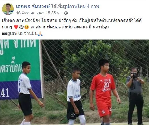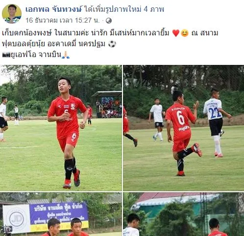 ซึ่งล่าสุดทางเฟซบุ๊กของ "โค้ชเอก" หนึ่งในสมาชิกทีมหมูป่า ได้ออกมาโพสต์ถึงเรื่องราวดีดี ของเหล่านักฟุตบอลทีมหมูป่าอะคาเดมี่ทั้ง 12 คน เเละตอนนี้กำลังฝึกซ้อมฟุตบอลกันอย่างเต็มที่ เเละมีความรักใคร่กลมเกลียวเสมือนเป็นพี่น้องกัน ระหว่างการซ้อมนั้นก็เกิดเหตุไม่คาดฝันขึ้นเมื่อน้องบิว ได้รับบาดเจ็บ โค้ชเอกรีบวิ่งเข้าไปช่วยเหลือน้องบิวในสนามอย่างเร่งด่วนพร้อมเครื่องมือปฐมพยาบาล ทำเอาชาวเน็ตต่างเข้ามาชื่นชมถึงความรักเเละสามัคคีกันของนักฟุตบอลทีมหมูป่า