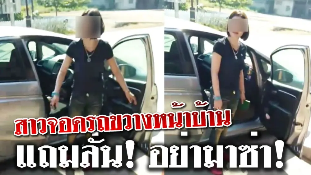สุดกร่างสาวหัวร้อนชี้หน้า!!! จอดรถขวางทางขึ้นบ้านคนอื่นไม่พอ ลั่นอย่ามาซ่า