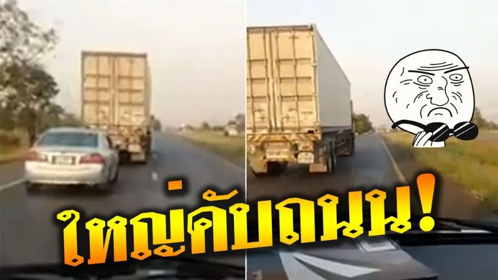 ใหญ่คับถนน!!! รถบรรทุกนักเลง ขับปาดไปมาไม่ยอมให้คันอื่นเเซง
