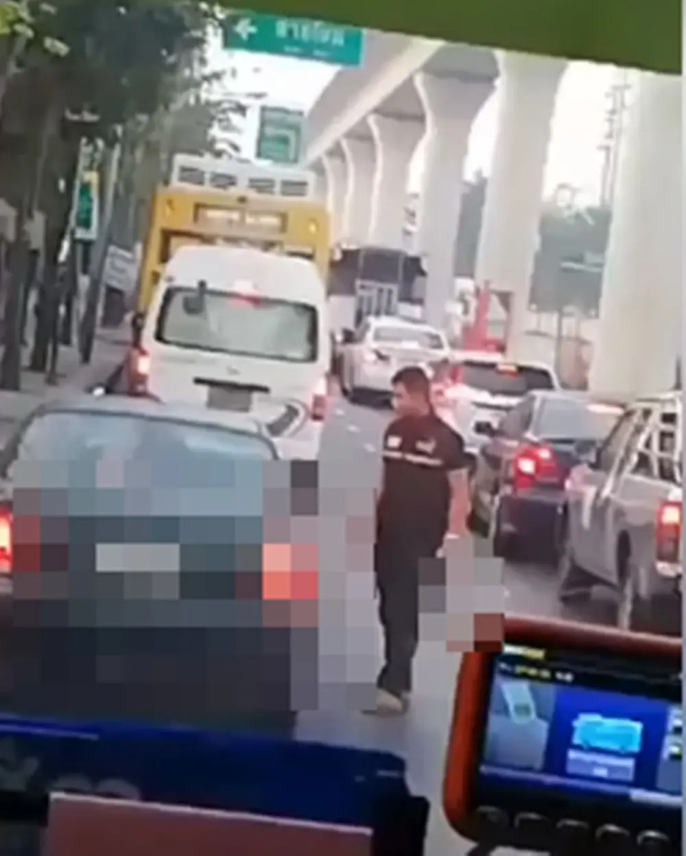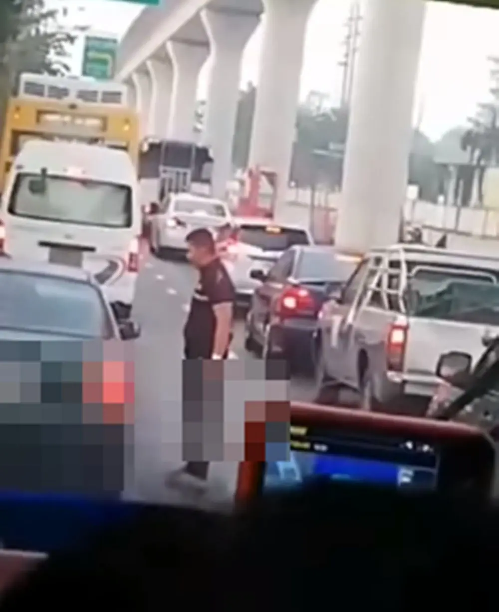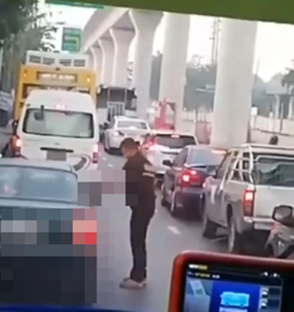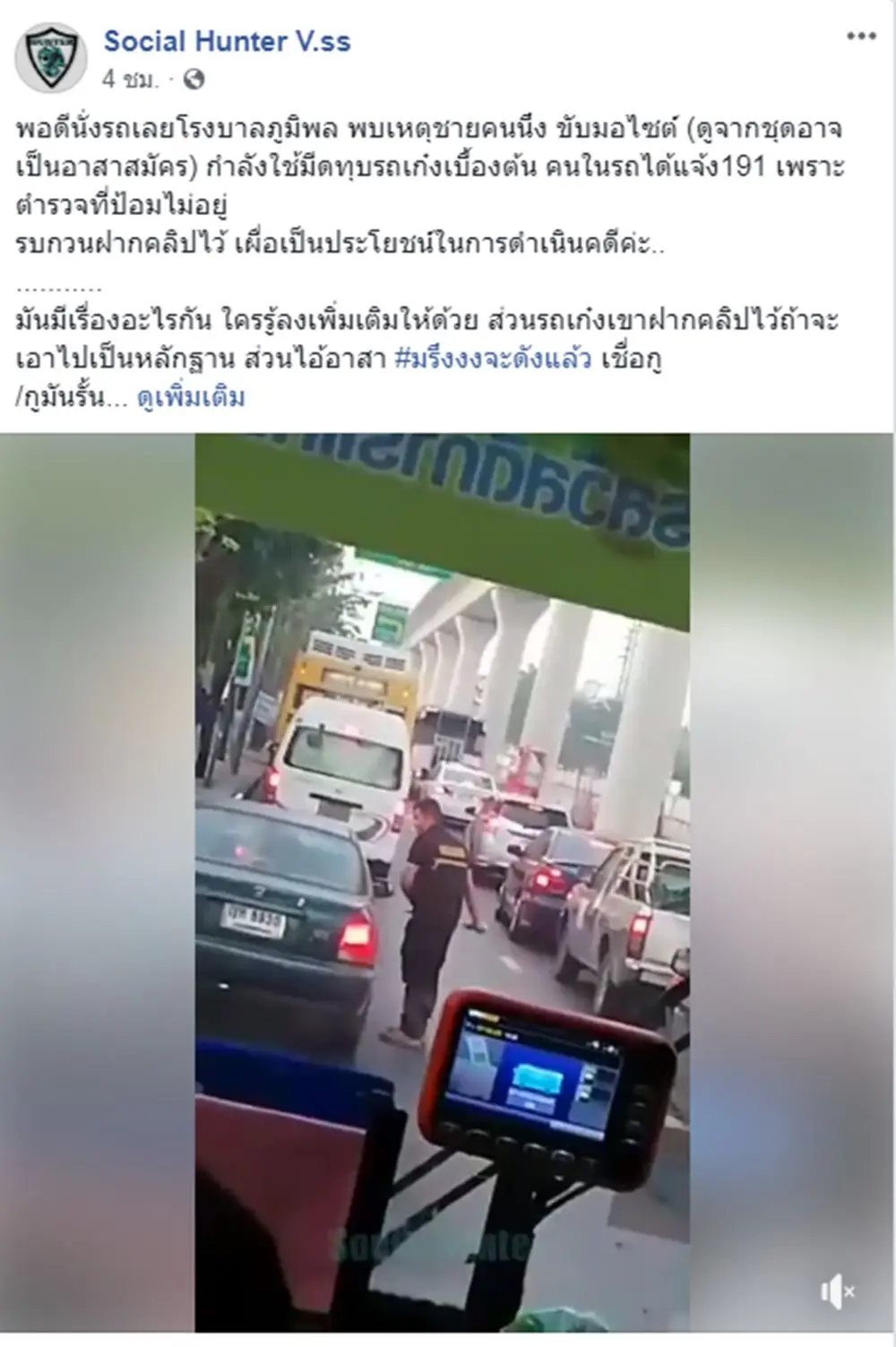 กลายเป็นเรื่องที่สร้างความตกใจและหวาดกลัวให้กับผู้ที่ผ่านไปผ่านมาบริเวณนั้นมากๆ เมื่อมีคนหนึ่งนั่งอยู่บนรถเมล์ได้ถ่ายคลิปไว้ ซึ่งคลิปดังกล่างเป็นคลิปที่มีผู้ชายคนหนึ่งใส่ชุดคล้ายอาสาสมัคร กำลังใช้มีดทุบกระจกรถเก๋งที่จอดอยู่ข้างทาง จำนวนหลายครั้ง และสีหน้าท่าทางของชายคนดังกล่าวนั้นมีท่าทางที่โมโหฉุนเฉียวเป็นอย่างมาก โดยได้มีเพจเฟซบุ๊กชื่อ Social Hunter V.ss ได้โพสต์คลิปและบอกเล่าเรื่องราวผ่านแคปชั่นระบุข้อความว่า พอดีนั่งรถเลยโรงบาลภูมิพล พบเหตุชายคนนึง ขับมอไซต์ (ดูจากชุดอาจเป็นอาสาสมัคร) กำลังใช้มีดทุบรถเก๋งเบื้องต้น คนในรถได้แจ้ง191 เพราะตำรวจที่ป้อมไม่อยู่รบกวนฝากคลิปไว้ เผื่อเป็นประโยชน์ในการดำเนินคดีค่ะ\มันมีเรื่องอะไรกัน ใครรู้ลงเพิ่มเติมให้ด้วย ส่วนรถเก๋งเขาฝากคลิปไว้ถ้าจะเอาไปเป็นหลักฐาน ส่วนไอ้อาสา #มรึงงงจะดังแล้ว เชื่อกู/กูมันรั้น ปล.ไม่ว่าจะเกิดจากสาเหตุอะไร แต่มึงทำผิดเป็นคดีเห็นๆ