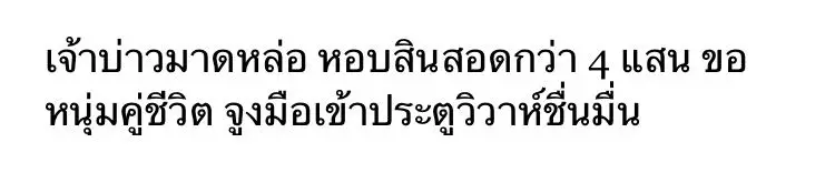 จากเมื่อวันที่ 20 ธ.ค.61 ที่ผ่านมา ได้มีงานวิวาห์ที่เป็นที่ฮือฮาอย่างมาก หลังเจ้าบ่าวและเจ้าสาว ต่างเป็นหนุ่มหล่อทั้งคู่ ซึ่งฝ่ายเจ้าบ่าวหอบสินสอด เงินสด 200,000 บาท ทองรูปพรรณน้ำหนัก 5 บาท และแหวนเพรชมูลค่า 50,000 บาท รวมค่าสินสอดทั้งหมด 4 แสนบาท ท่ามกลางญาติพี่น้อง-เพื่อนๆ ที่มาร่วมเป็นสักขีพยานในงานวิวาห์ครั้งนี้