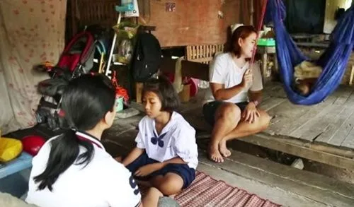 ส่วนแม่มีอายุประมาณ 59 ปีเป็นโรคลำไส้พอรับประทานอาหารเข้าไปก็จะอาเจียนออกมาหมด จึงทำให้ร่างกายของแม่มีความซูบผอมเป็นอย่างมาก และด้วยความที่พ่อแม่มีอายุมากและมีอาการป่วยจึงทำให้ท่านทั้งสอง ทำงานได้เพียงแค่สานหญ้าคา ถักแห เอาไปขาย เพราะไม่อยากเป็นภาระของลูก