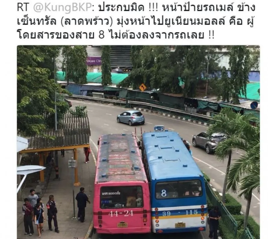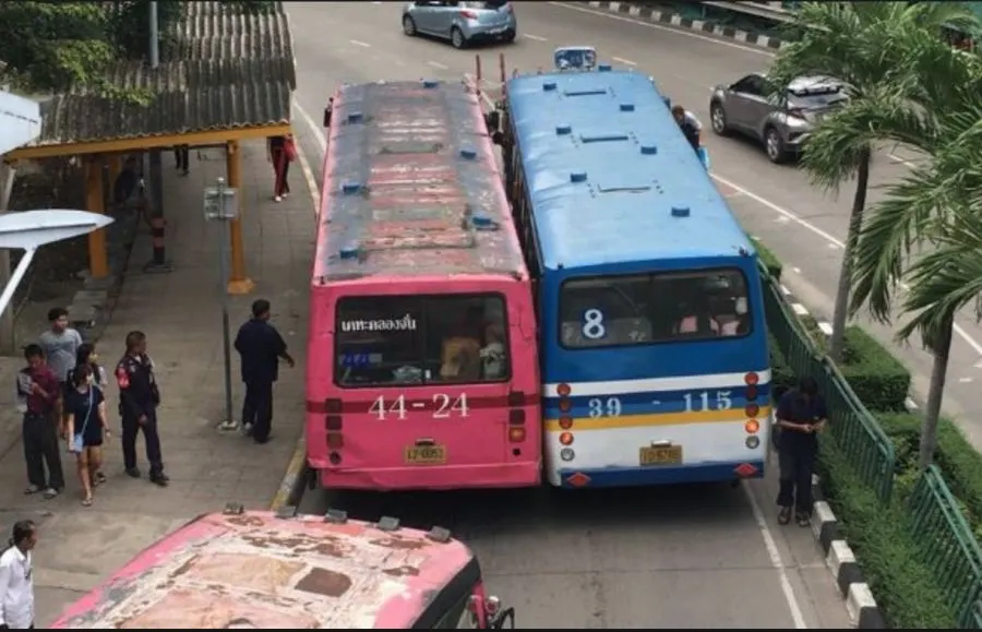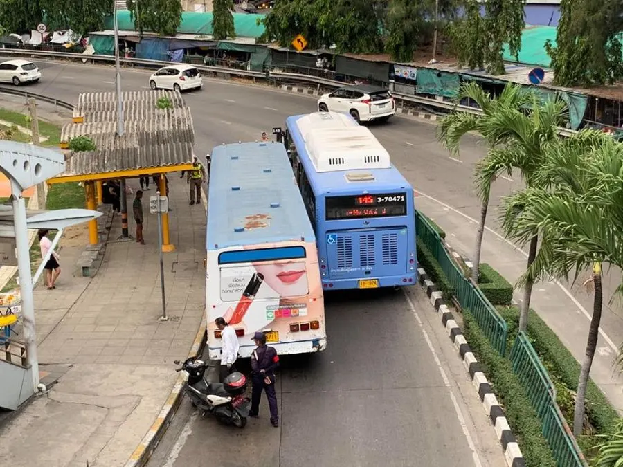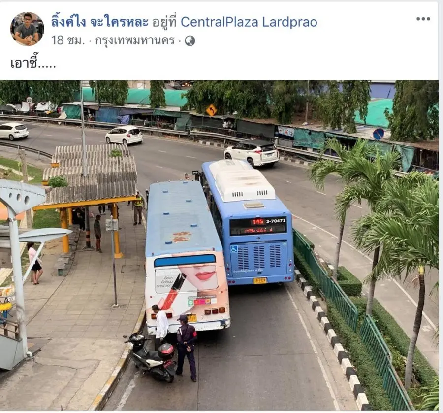 จะรีบกันไปไหน!!! วิจารณ์กันสนั่น “รถเมล์เบียดกัน” ข้างห้างดัง ย่านลาดพร้าว ที่เก่าเวลาใหม่
