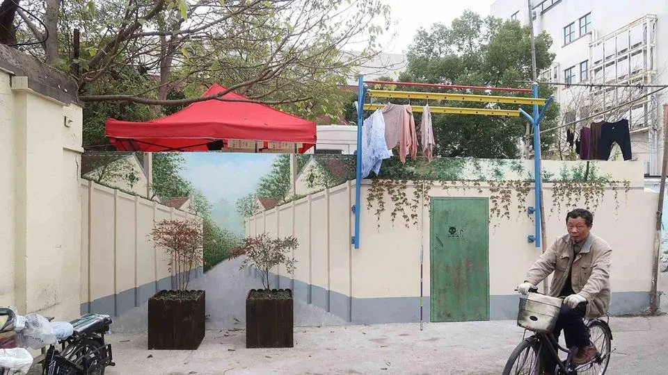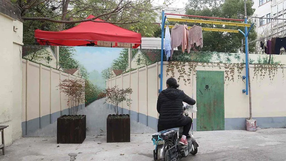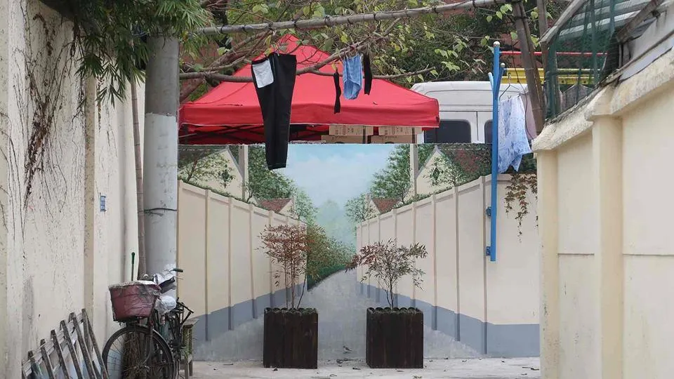 ขอขยี้ตาแป๊บ! ภาพวาดสามมิติบนกำแพงแห่งหนึ่งในมหานครเซี่ยงไฮ้ ที่ 'สมจริง' จนต้องวางกระถางต้นไม้กั้น ป้องกันอุบัติเหตุ