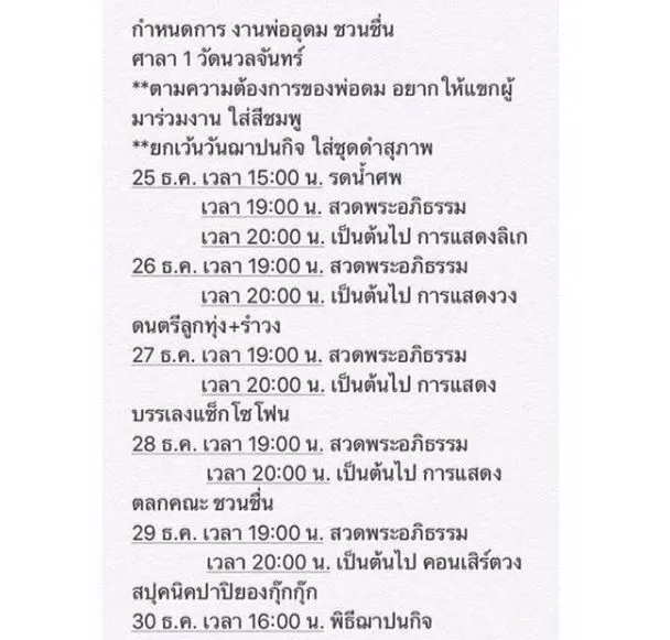 โดยกำหนดการ ของคุณพ่อ อุดม ทรงแสง มีดังนี้