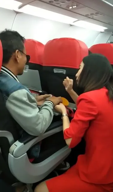 อีกหนึ่งคลิปที่ถูกเผยเเพร่กันมากในโลกโซเชียล โพสต์โดยผู้ใช้สมาชิกเฟซบุ๊กชื่อ Panuwat Mardsanga เป็นคลิป เเอร์โอสเตสของสายการบินแอร์เอเชีย กำลังอธิบายการใช้อุปกรณ์ต่างๆให้กับผู้พิการทางสายตาอย่างละเอียดให้เข้าใจในการใช้เวลาเกิดเหตุฉุกเฉิน