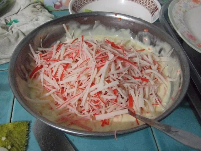 สูตรคือ ทำเหมือนกับทูน่าเลยค่ะ แค่เปลี่ยนเป็นปูอัด