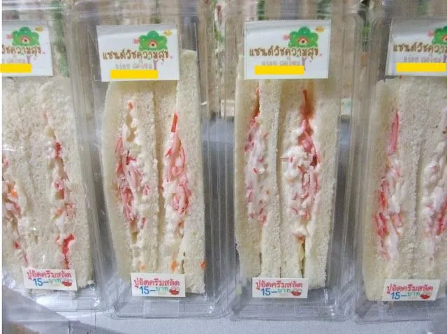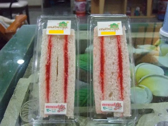 ขนมปังที่เราเลือกใช้เราเลือกใช้เป็นของฟาร์มเฮ้า เพราะมีเนื้อค่อนข้างนุ่ม อีกทั้งยังหาซื้อได้ง่าย แต่แนะนำว่าให้ซื้อมีดหั่นขนมปังด้วย เพราะในเวลาหั่นเนื้อจะไม่เละ