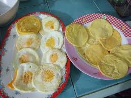 ต่อมาเป็นหมวดไข่จ้า เราจะทอดวันต่อวัน จะมีทั้งไข่ดาว และไข่เจียว ใช้แม่พิมพ์วงกลม วางและทอด ใช้ไฟเบาๆค่ะ