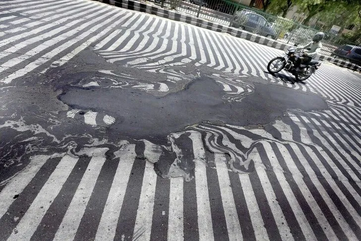 ความร้อนขั้นสุดที่ทำให้ถนนในอินเดียละลาย