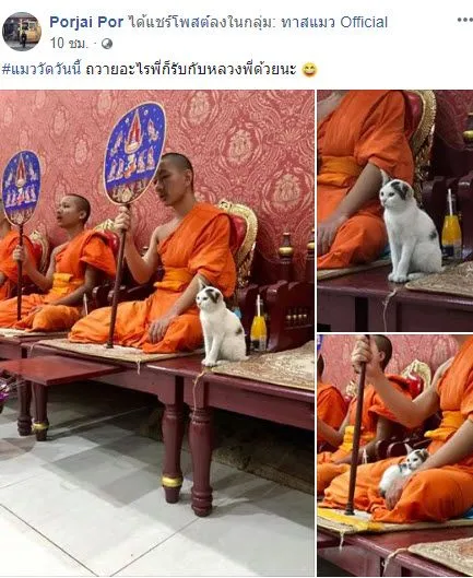 เป็นอีกหนึ่งภาพน่ารักๆ เมื่อสมาชิกเฟซบุ๊กชื่อ "Porjai Por" ได้โพสต์ภาพลงในกลุ่ม ทาสเเมว Official