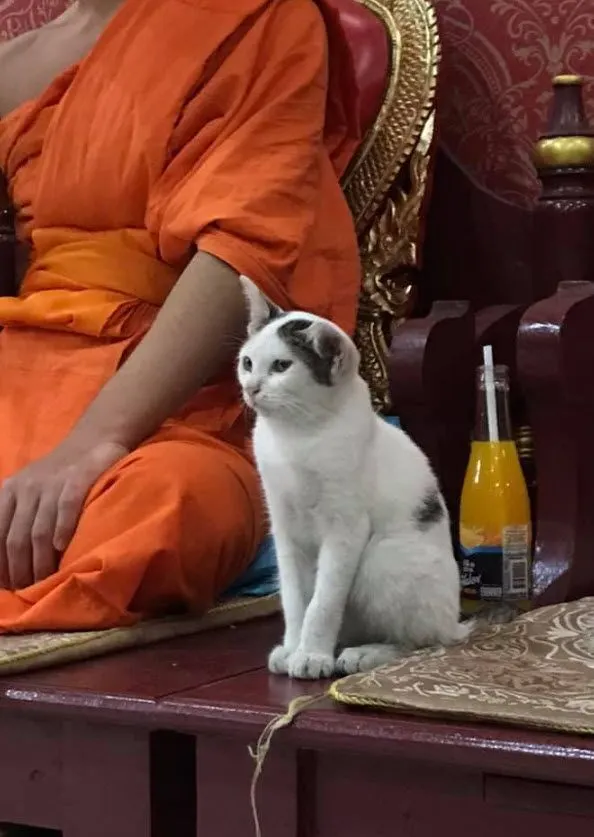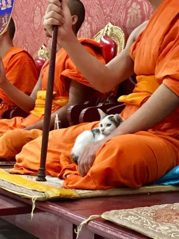 ภายในภาพนั้นเป็นน้องเเมวกำลังนั่งบนตักของหลวงพี่ระหว่างที่หลวงพี่กำลังเทศน์ อย่างน่ารักน่าเอ็นดู ไม่วิ่งเล่นดื้อซน ทำชาวเน็ตเหล่าชาวเน็ตต่างเข้ามาชื่นชมในความน่ารักของเจ้าเเมวน้อยที่ไม่เกเรเเละเชื่อฟังหลวงพี่
