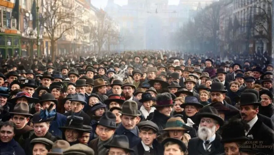 6.ฝูงชนออกมาเฉลิมฉลองการสิ้นสุดของสงครามโลกครั้งที่ 1