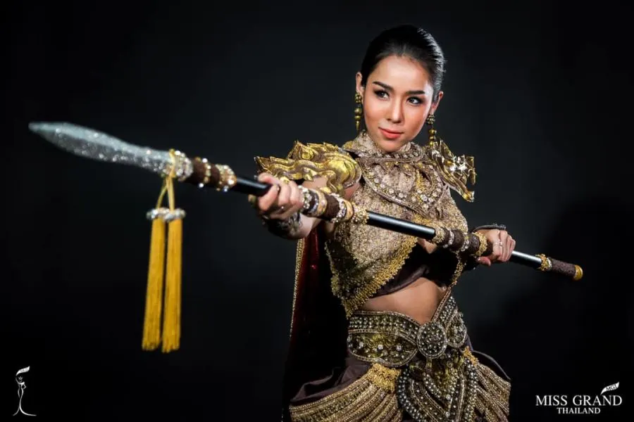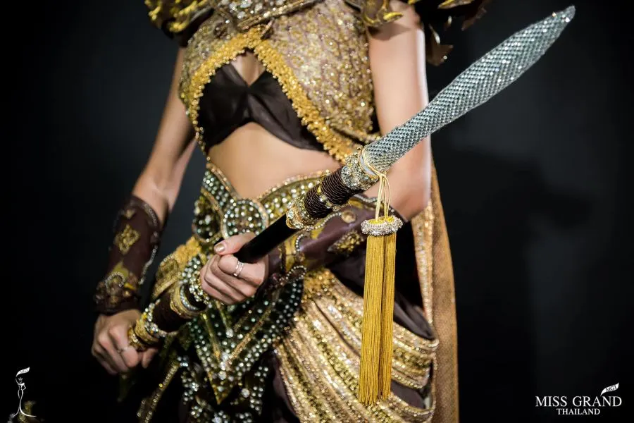 ชุดมีลักษณะพื้นฐานมาจากชุดของหญิงชาวบ้านที่ใส่ในยามออกศึกนั่นคือตะเบงมานและโจงกระเบน แต่ได้เพิ่มรายละเอียดและปรับรูปแบบใหม่ให้มีความทันสมัยวิจิตรตระการตามากขึ้น สิ่งสำคัญอีกอย่างหนึ่งของชุดนี้คือ หอก หนึ่งในอาวุธสำคัญที่ใช้ในการสู้รบยามออกศึก โดยรวมของชุดส่งให้ผู้สวมใส่ได้แสดงออกถึงพลังของความเข้มแข็งและกล้าหาญของสตรีเพศได้อย่างน่าเกรงขาม เช่นเดียวกับวีรสตรีแห่งชุมชนบ้านบางระจัน