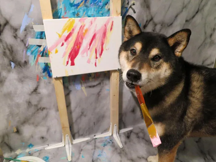 สุดยอดศิลปิน!! สุนัขพันธุ์ชิบะโชว์วาดภาพ Abstract Art สวย ล้ำลึก จนกลายเป็นศิลผู้โด่งดัง