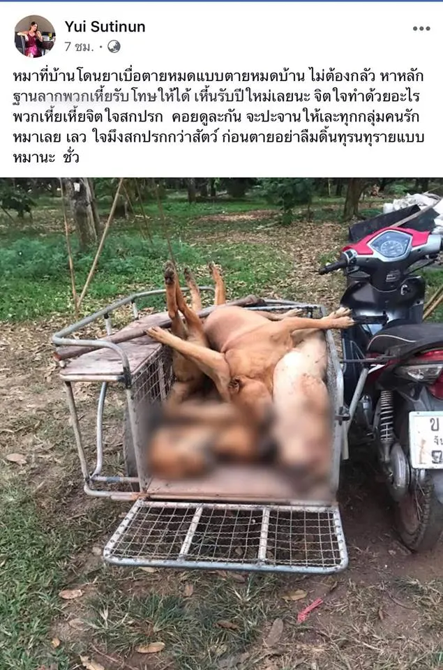 หมาที่บ้านโดนยาเบื่อตายหมดแบบตายหมดบ้าน ไม่ต้องกลัว หาหลักฐานลากพวกเ...้ยรับโทษให้ได้ เ...้นรับปีใหม่เลยนะ จิตใจทำด้วยอะไร พวกเ...้ยเ...้ยจิตใจสกปรก คอยดูละกัน จะปะจานให้เละทุกกลุ่มคนรักหมาเลย เลว ใจมึงสกปรกกว่าสัตว์ ก่อนตายอย่าลืมดิ้นทุรนทุรายแบบหมานะ ชั่ว