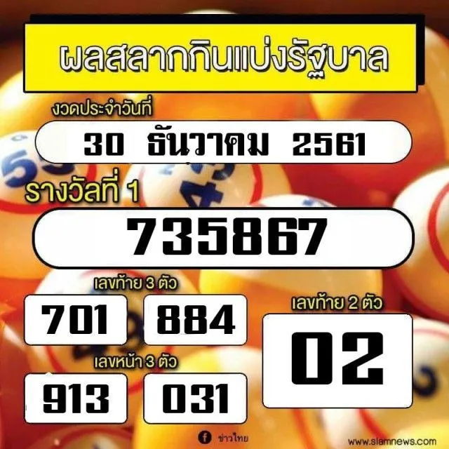ออกไปแล้วจ้าสดๆร้อนๆ สำหรับการประกาศผลรางวัลสลากกินแบ่งรัฐบาลประจำวันที่ 30 ธันวาคม 61