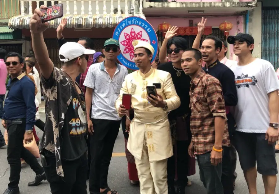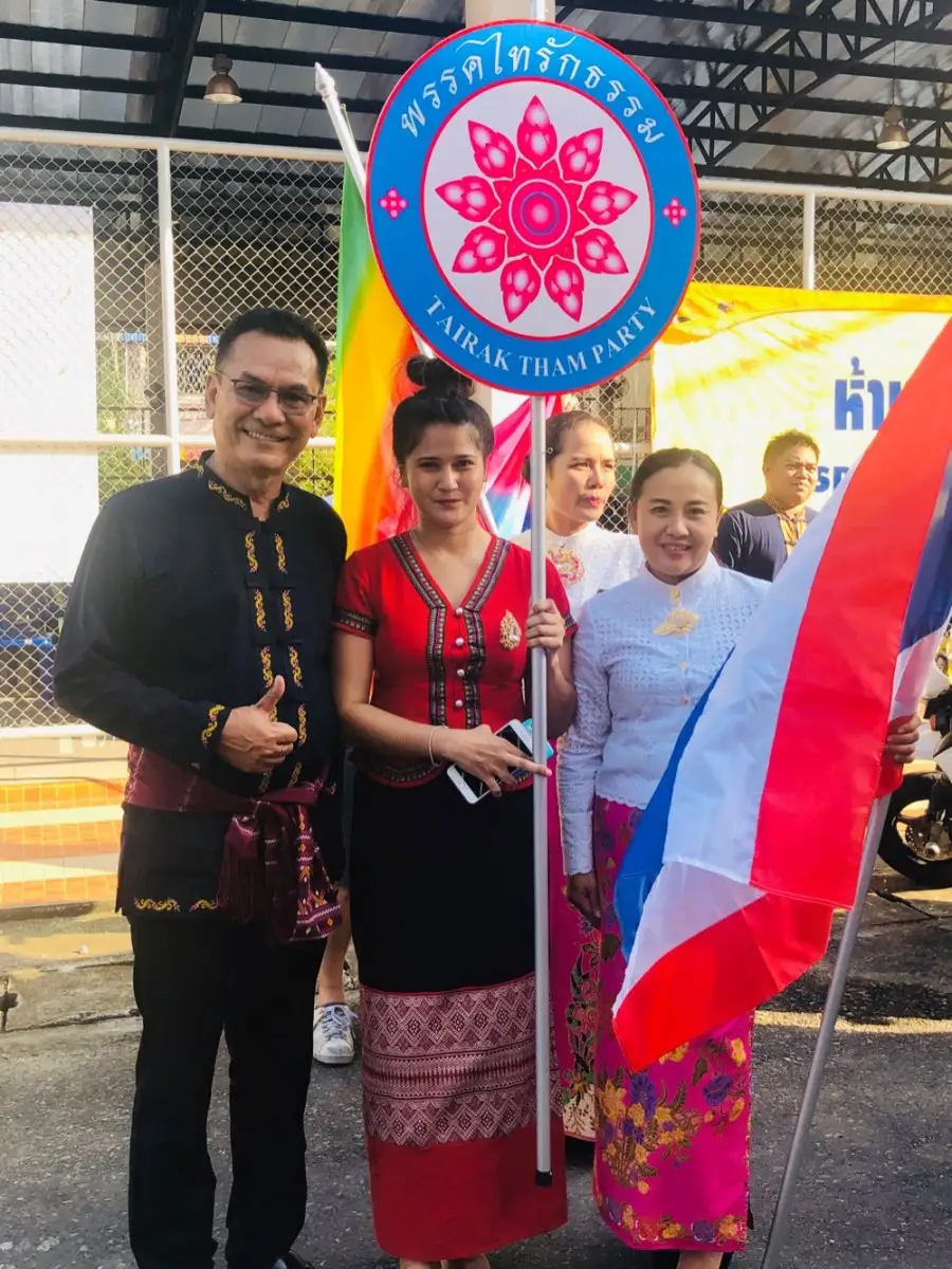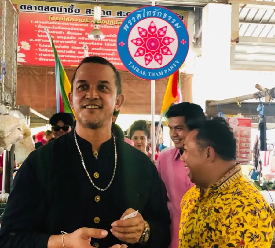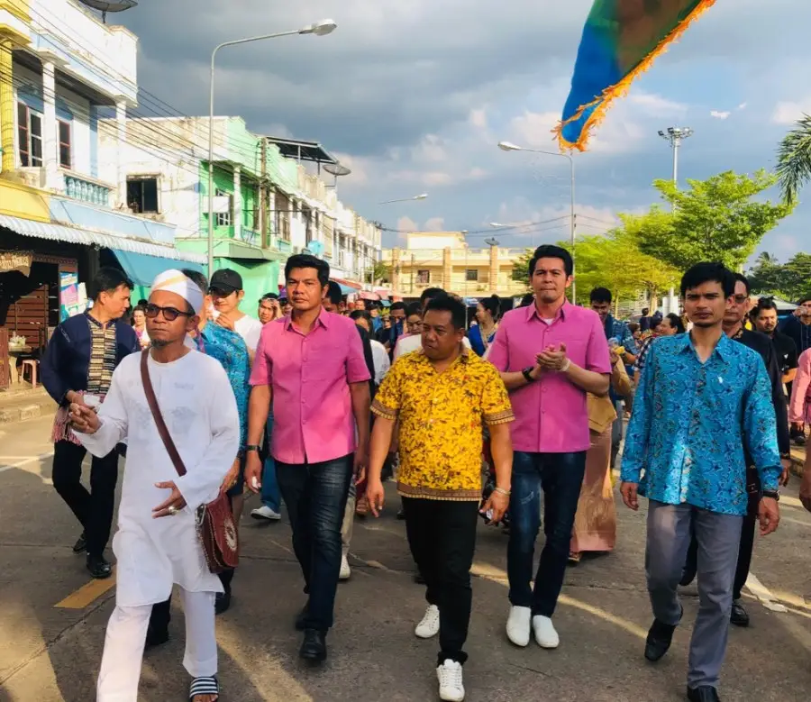 เหล่าดาราคนดัง “โด่ง-สิทธิพร นิยม” , “เอ-วิทิต แลต” รองเลขาธิการพรรค , “นัย สุขสกุล” (รณกร สกุลสุกใส) ผู้อำนวยการพรรค , “ตุ๊ก – จตุวิทย์ กาละมิตร์” เลขาธิการพรรค , “หนุ่ม จีสตาร์” (ชิษณุพงศ์ ไตรรัตน์รังษี) รองหัวหน้าพรรค และ “เดซี่” (สมชาย เล็กน้อย) รองโฆษกพรรค ว่าที่ผู้สมัครสส. “พรรคไทรักธรรม” เดินขบวนแห่พบปะประชาชนชาวปาดังเบซาร์ จังหวัดสงขลา