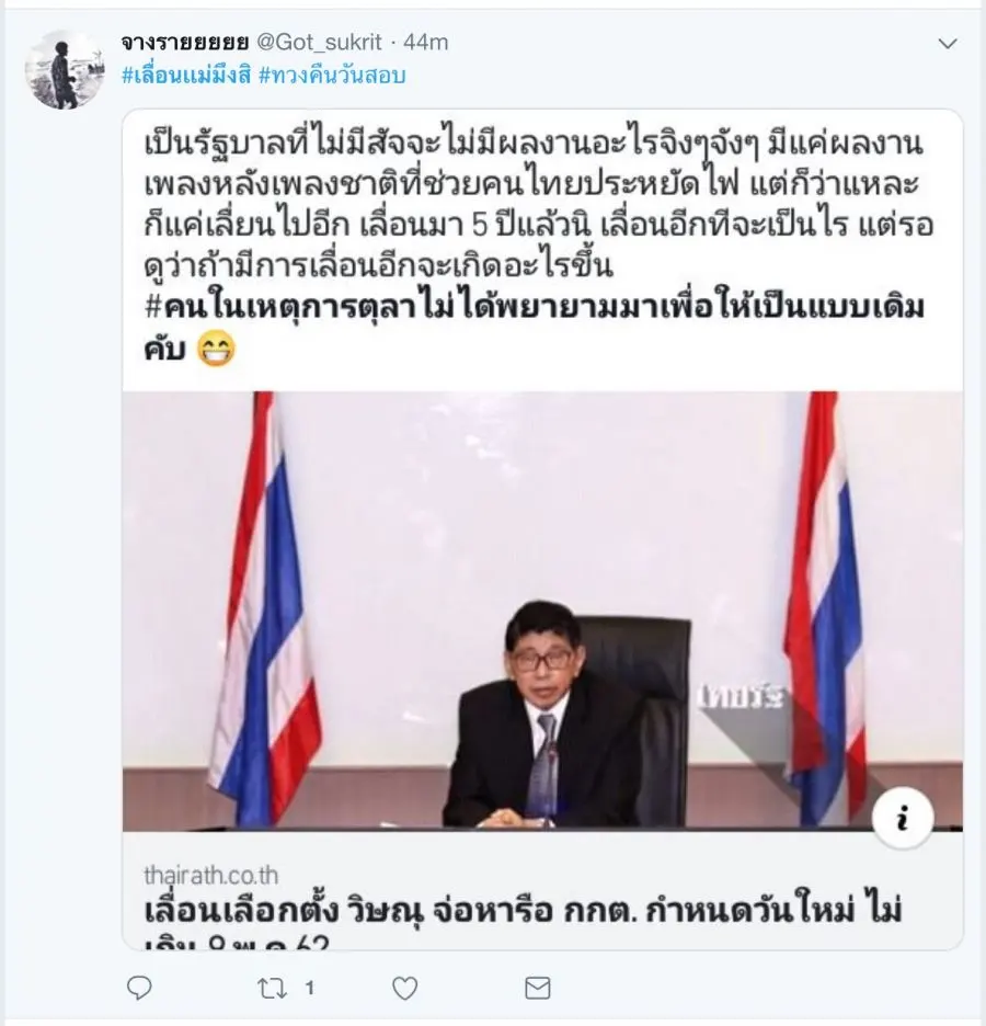 ขึ้นอันดับ 1 ติดเทรนด์โลกทวิตเตอร์ "เลื่อนแม่มึงสิ" หลัง “รองนายกรัฐมนตรี” เผยมีแนวโน้ม เลื่อนวันเลือกตั้ง