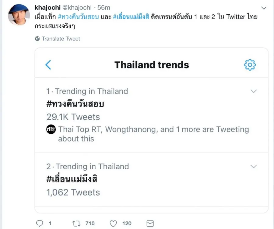 หลังจากการให้สัมภาษณ์ดังกล่าว ล่าสุด มีผลตอบรับในโลกทวิตเตอร์ของคนไทย พบว่า #เลื่อนแม่มึงสิ ได้ติดอันดับ 1 และ #เลื่อนแม่มึงสิ ยังติด 1 ใน 10 อันดับเทรนด์โลกของทวิตเตอร์ด้วย ทั้งนี้ มีตัวเลขการทวีตมากกว่า 279,000 ครั้ง ในช่วงเวลาประมารณ 21.00 น.