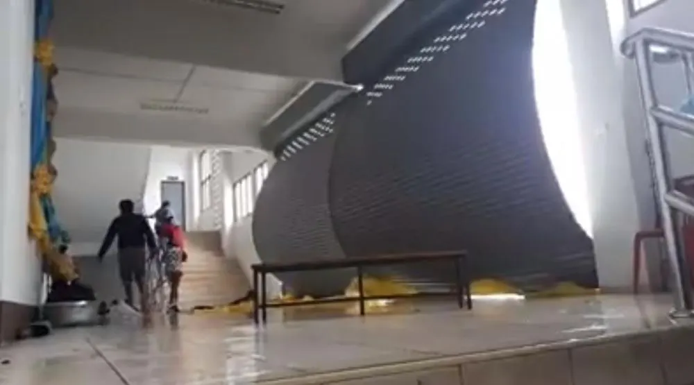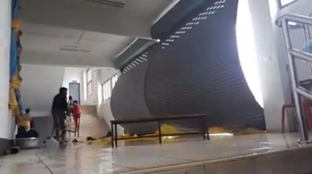 รุนแรงมาก !! "พายุปาบึก" ขนาดมาไม่เต็มที่ เล่นซะ "ประตูม้วนเหล็ก" งอ เป็นผ้าเลย (ชมคลิป)