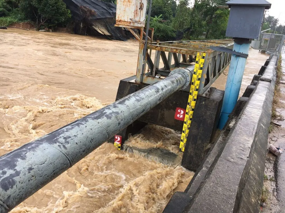 - บริเวณ สะพาน (GT๒๐) หมู่ ๑ กำเนิดนพคุณ อ.บางสะพาน หน้า โรงเรียนอนุบาลบางสะพาน สถานการณ์น้ำ ตอนนี้อยู่ที่ ๕.๙๐ เมตร แนวโน้มน่าจะลดลงหลังจากน้ำทะเลลดลง โดยเห็นได้ชัดจากการเทียบกับช่วงเวลา ๘ โมงเช้า