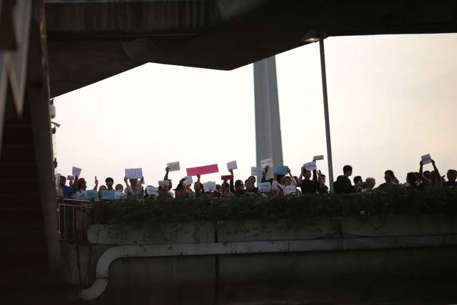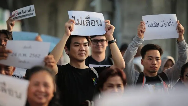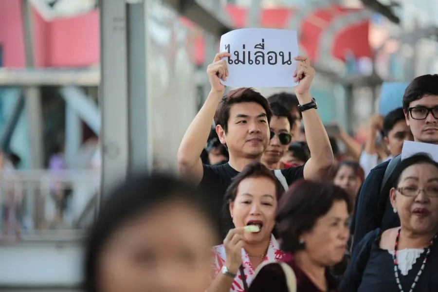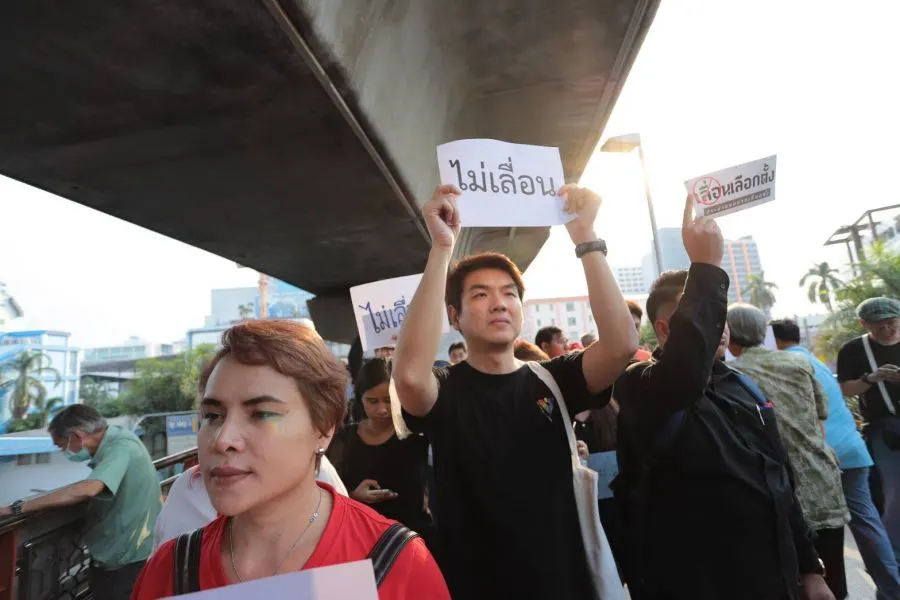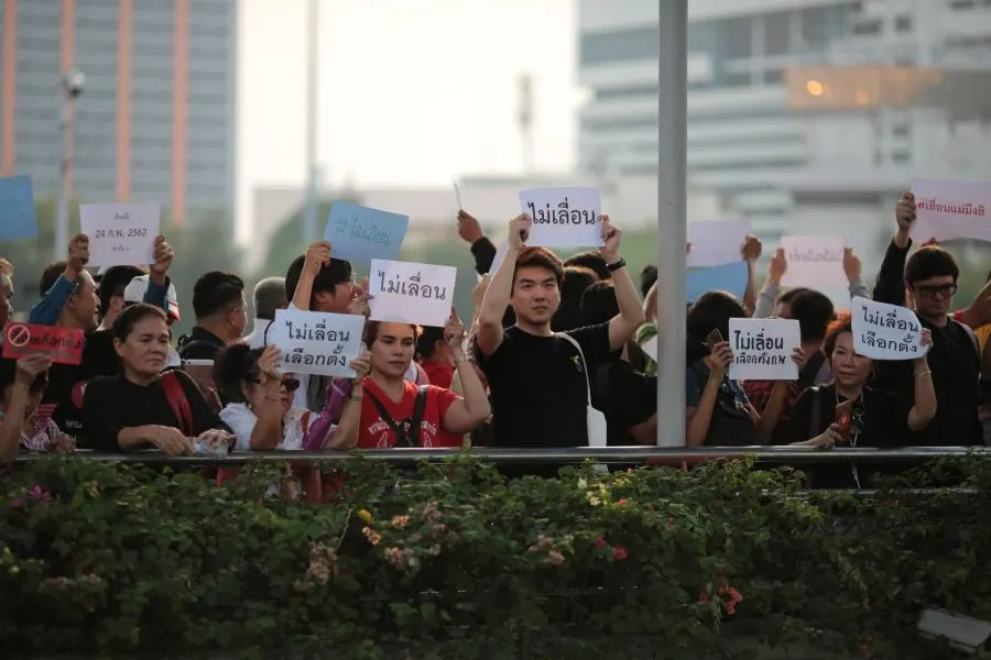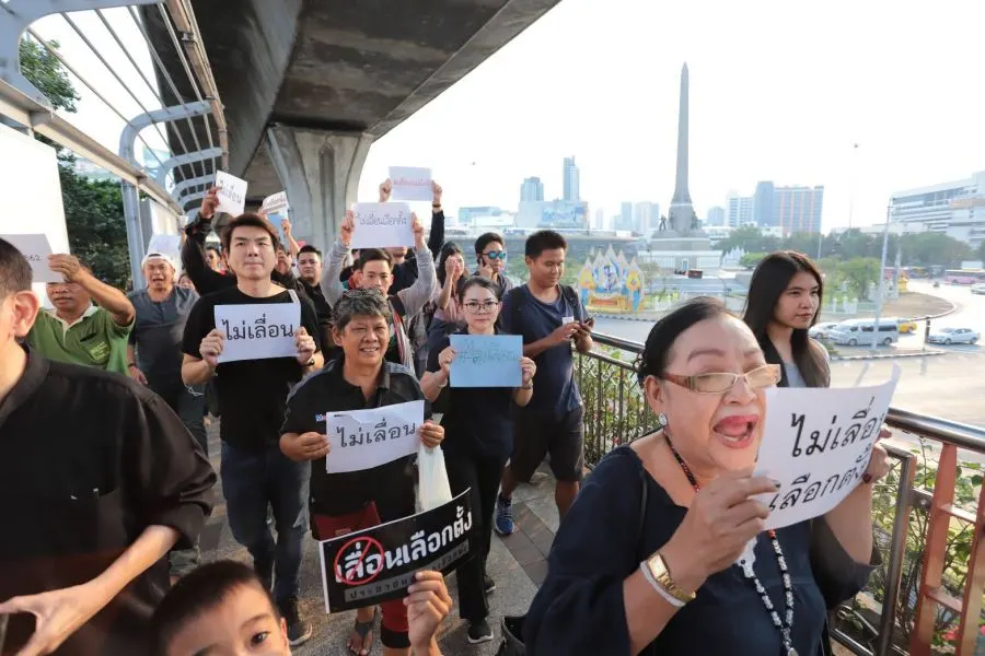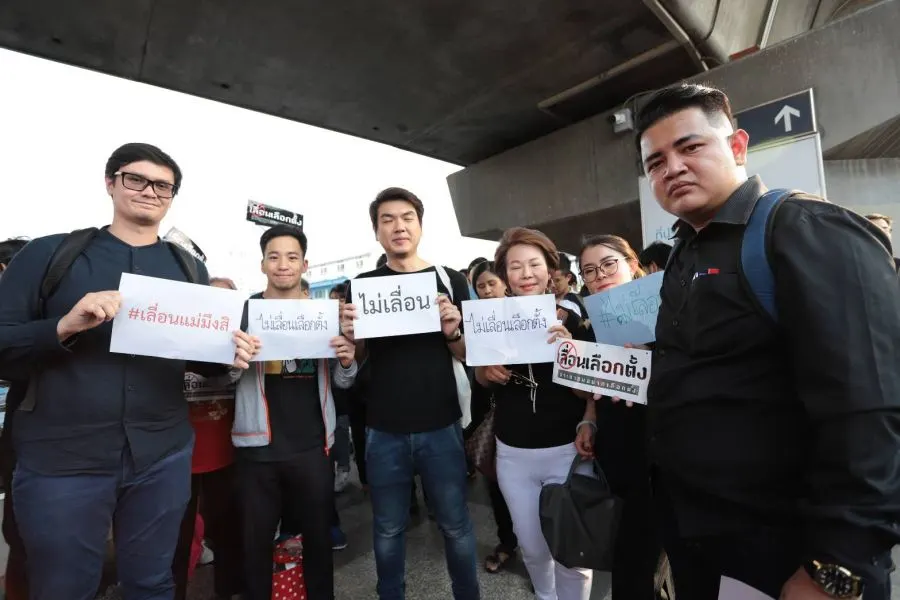 "ปิยบุตร" รุดให้กำลังใจคนอยากเลือกตั้ง ชูป้าย “ไม่เลื่อน” ที่สกายวอร์ค อนุสาวรีย์ชัยสมรภูมิ ชี้เลือกตั้งกรอบเวลาเดิมทำได้