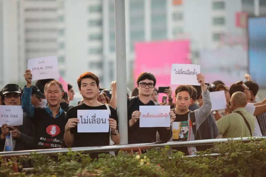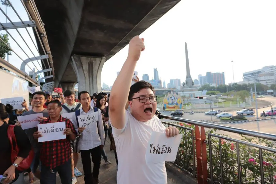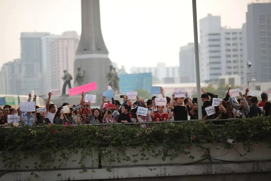 เมื่อเวลา 16.00 น. ที่บริเวณสกายวอร์ค อนุสาวรีย์ชัยสมรภูมิ นายปิยบุตร แสงกนกกุล เลขาธิการพรรคอนาคตใหม่ พร้อมด้วยนายรังสิมันต์ โรม ผู้ช่วยเลขาธิการพรรคอนาคตใหม่ เดินทางไปร่วมสังเกตการณ์ และให้กำลังใจการชุมนุมของกลุ่มคนอยากเลือกตั้ง ซึ่งเดินทางมาชุมนุมร่วมแสดงออก ไม่เห็นด้วยกับการเลื่อนเลือกตั้ง ด้วยการชูป้าย “ไม่เลื่อน”