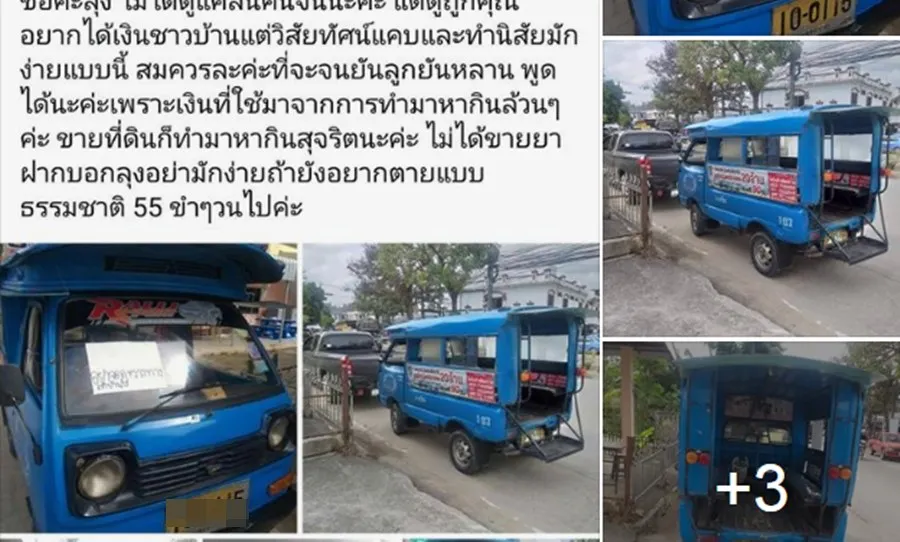 ลุงค่ะเกะกะทางเข้าบ้านหนูค่ะ เหล้าค้างหรอค่ะ ไม่รุ้ว่าบ้าหรือโง่ถึงว่าทำได้แค่ขับสองแถว คันนี้เช่าหรือซื้อค่ะลุง ไม่ได้ดูแคลนคนจนนะค่ะ แต่ดูถูกคุณอยากได้เงินชาวบ้านแต่วิสัยทัศน์แคบและทำนิสัยมักง่ายแบบนี้ สมควรละค่ะที่จะจนยันลูกยันหลาน พูดได้นะค่ะเพราะเงินที่ใช้มาจากการทำมาหากินล้วนๆค่ะ ขายที่ดินก็ทำมาหากินสุจริตนะค่ะ ไม่ได้ขายยา ฝากบอกลุงอย่ามักง่ายถ้ายังอยากตายแบบธรรมชาติ 55 ขำๆวนไปค่ะ